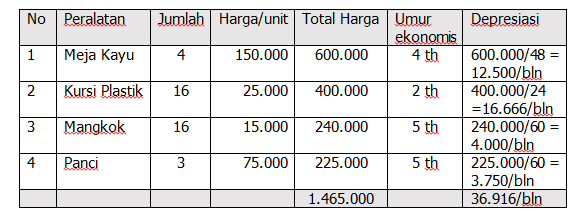 Berdasarkan ilustrasi diatas dapat dinyatakan bahwa dalam pembelian harta tetap (modal tetap) setiap bulannya akan kehilangan nilai sebesar Rp. 36.916,-/bulan.