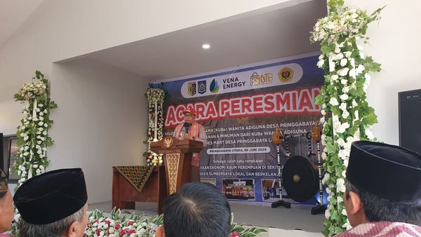 PJ Gubernur NTB drs,Lalu Gita Ariadi,M.Si memberikan sambutan sekaligus meresmikan KUBe Adiguna Wanita dibDesa Pringgabaya Utara.