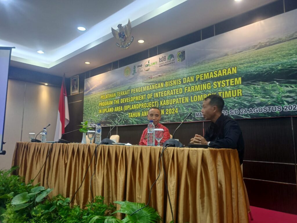 Hello sahabat Koperasi dan UMKM NTB, mewakili Kadiskop UKM NTB, Kabid Pembinaan Koperasi Drs.H.Muksin,MM menjadi narasumber pada pelatihan terkait Pengembangan Bisnis dan Pemasaran Kegiatan Upand Tahun 2024 Kegiatan The Development of Integrated Farming System in Upland Area (UPLAND) di Kabupaten Lombok Timur. Kegiatan ini dilaksanakan di Hotel Lombok Raya. (22 Agustus 2024)